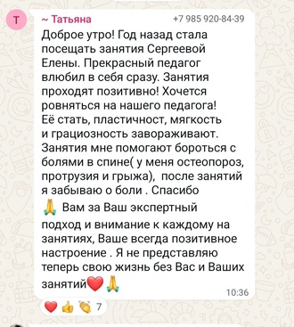 Помогаю улучшить осанку, гибкость, координацию и выносливость, безопасно укрепить мышцы корпуса и снять напряжение в спине и шее - с учётом возраста, уровня подготовки и особенностей здоровья.»