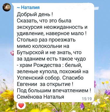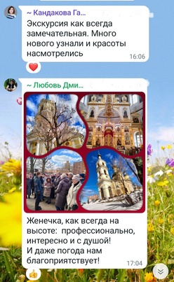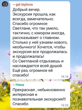 На моих экскурсиях Вы не просто посетите православный храм, Вы познакомитесь с его историей, небесными покровителями, святынями, почитаемыми образами. Узнаете о традициях и таинствах, о богослужении, об истине и заблуждениях, о праздниках и иконах, о множестве чудес и удивительных историй!